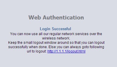 3. 图书馆无线使用原有的web页面进行认证,帐号密码同1。如您在登录成功后关闭了注销页面,可在浏览器中输入 1.1.1.1/logout.html 进行注销。