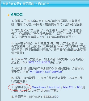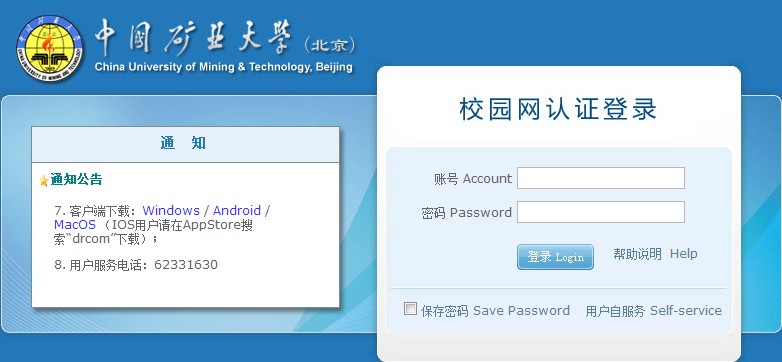 2. 客户端方式需要下载安装客户端,运行程序后即可登录,帐号密码同1。客户端下载链接,详见Web登录页面的滚动通知栏及自助服务的通知公告,建议使用“winRAR”软件进行解压。